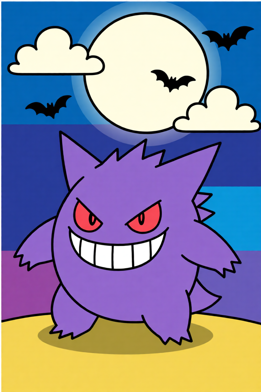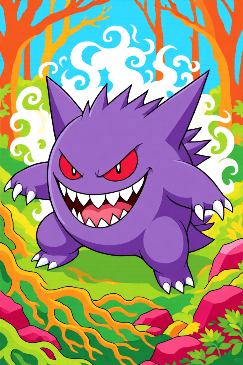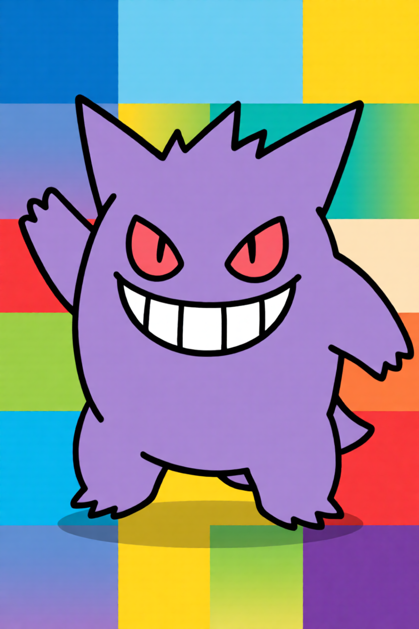 Upload a clear Gengar image, such as classic pose art, anime-style fan art, or a Mega Gengar reference.