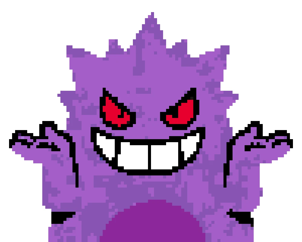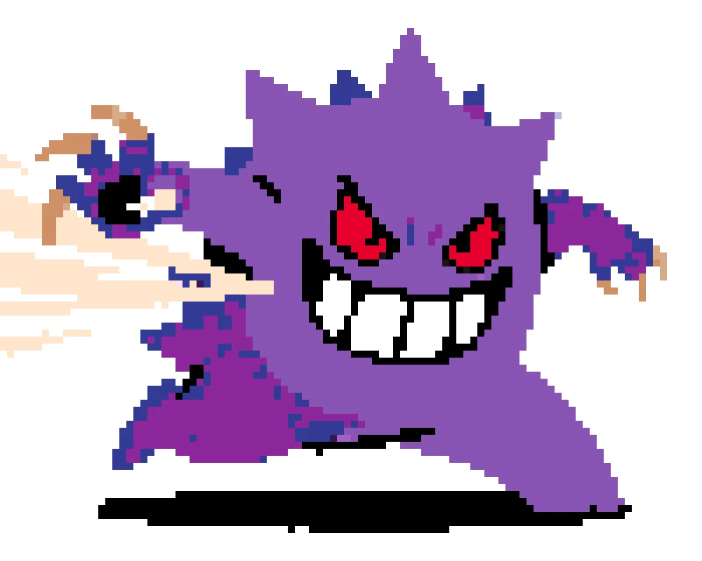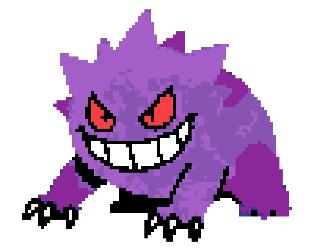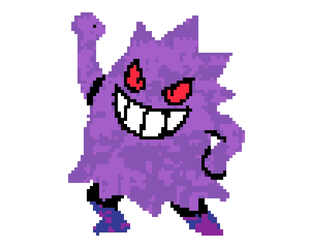 Yes. Use a larger grid, keep deeper purple tones, and add one or two highlight colors to separate Mega Gengar shadows.