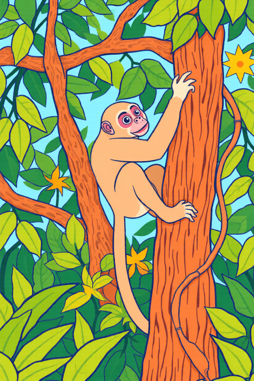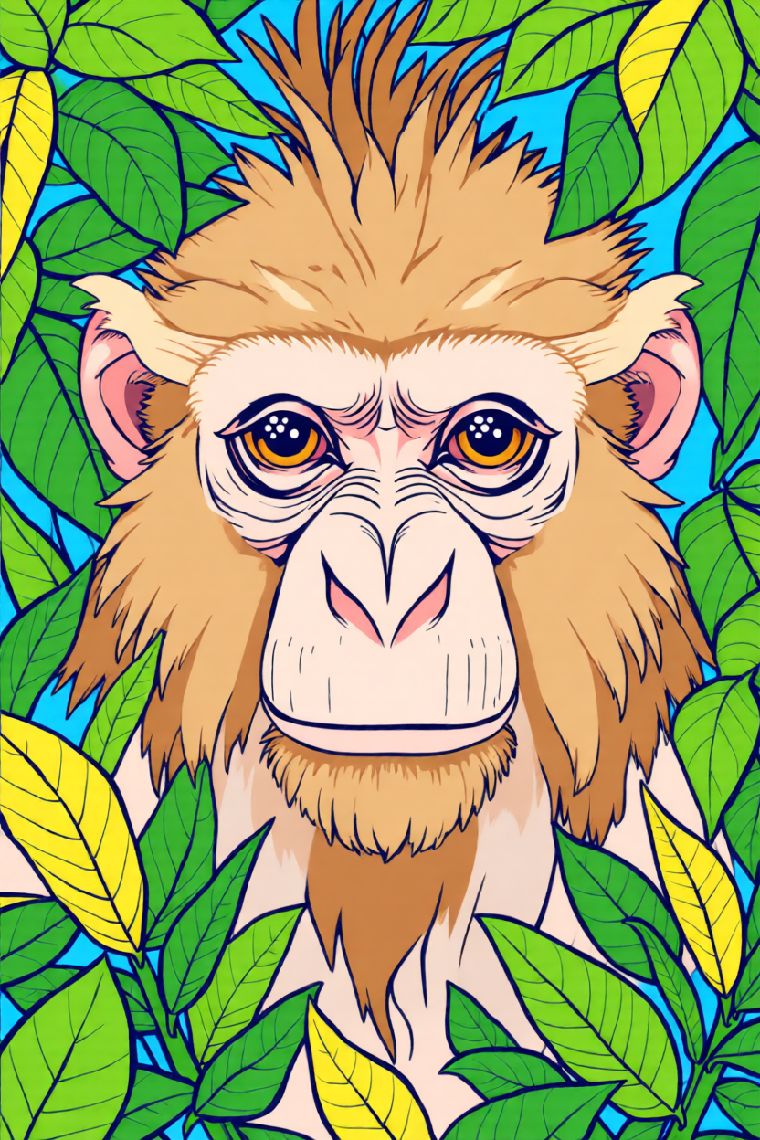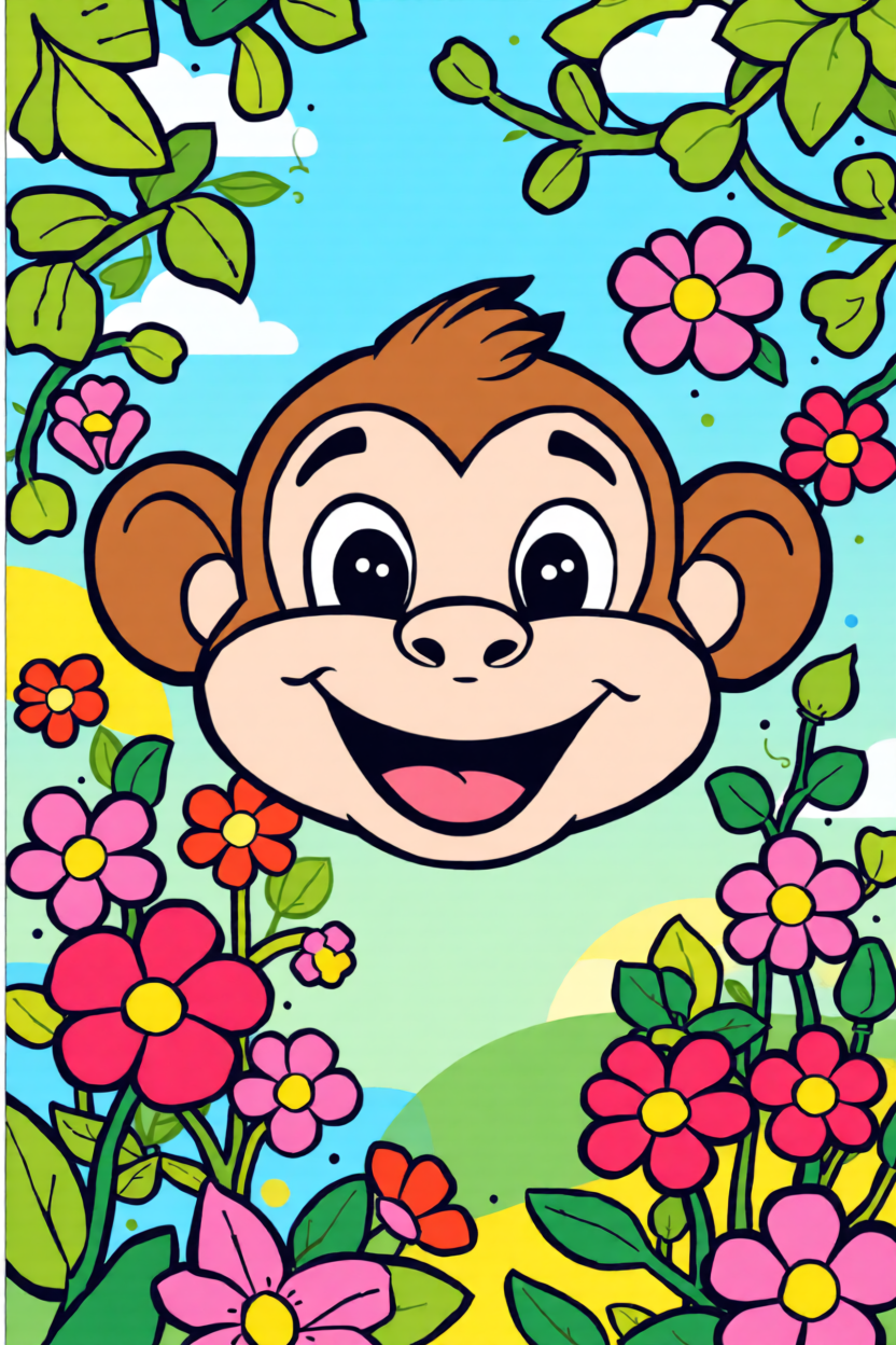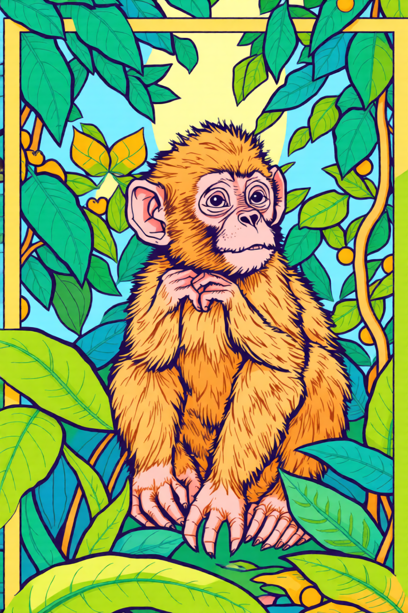 Choose a front-facing baby monkey, cartoon monkey head, or simple monkey holding a banana. Bold outlines and clear brown-tan color blocks convert much better than busy jungle photos.