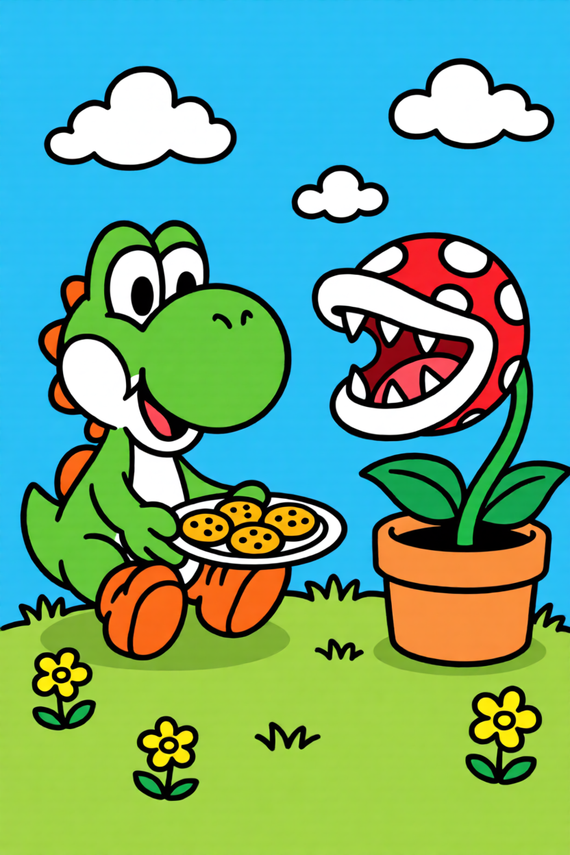 Great pick for a quick project. Start with a 20x20 or 24x24 grid and around 6-9 colors, so Yoshi stays clear without feeling too hard.
