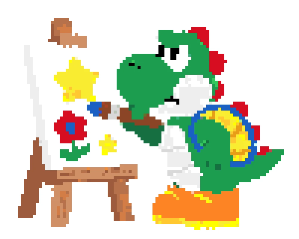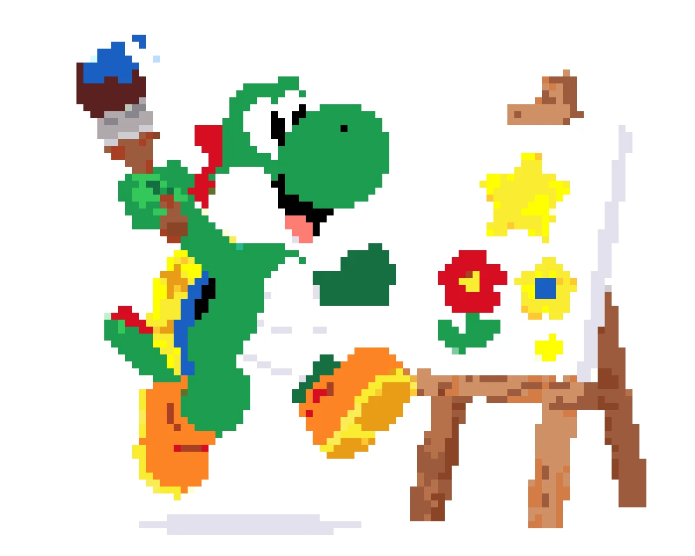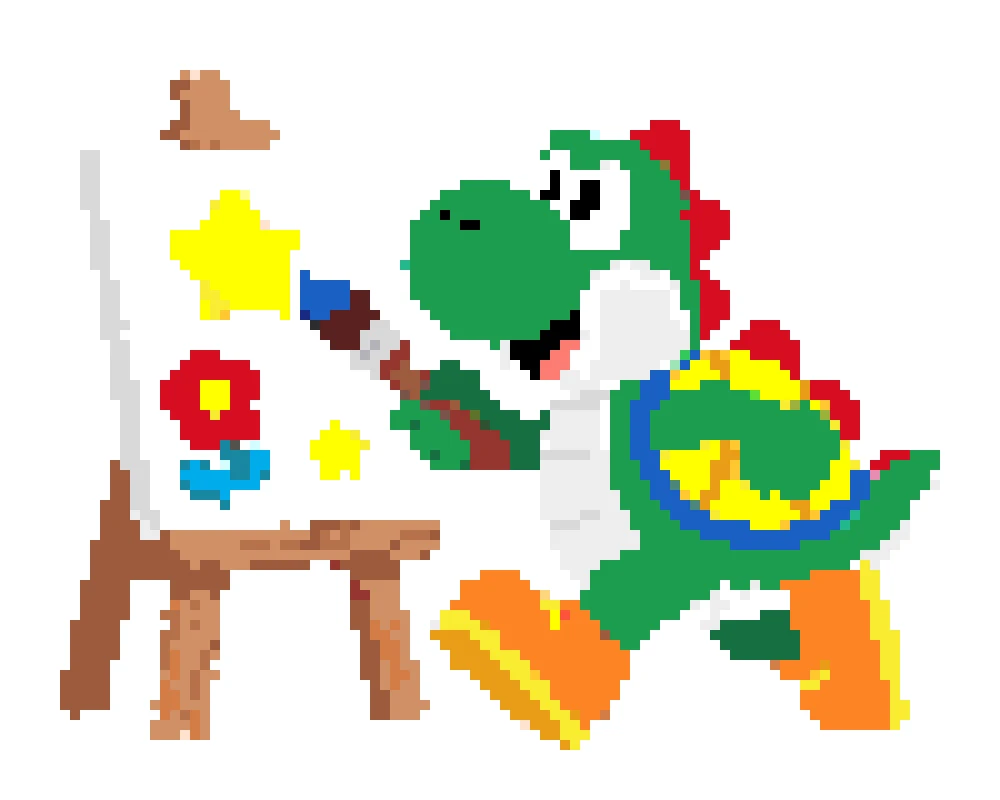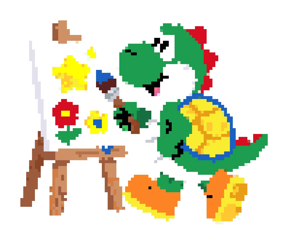 Use our perler bead pattern generator to turn Yoshi sprites, game screenshots, or fan art into a clean yoshi perler bead pattern. The tool keeps important details like Yoshi's round snout, saddle shape, and shoe contrast while removing background noise. Start with a small grid for a fast build, or keep more detail for a bigger display piece.