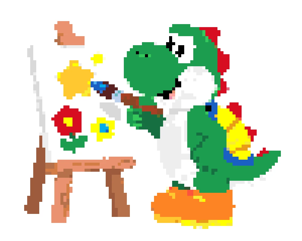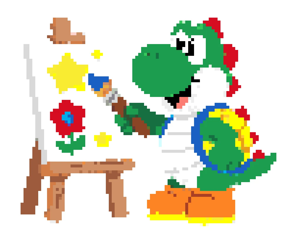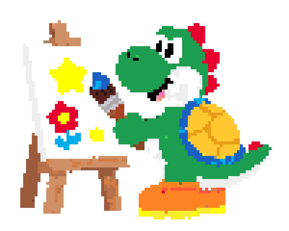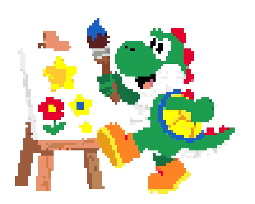Use our perler bead pattern generator to turn Yoshi sprites, game screenshots, or fan art into a clean yoshi perler bead pattern. The tool keeps important details like Yoshi's round snout, saddle shape, and shoe contrast while removing background noise. Start with a small grid for a fast build, or keep more detail for a bigger display piece.